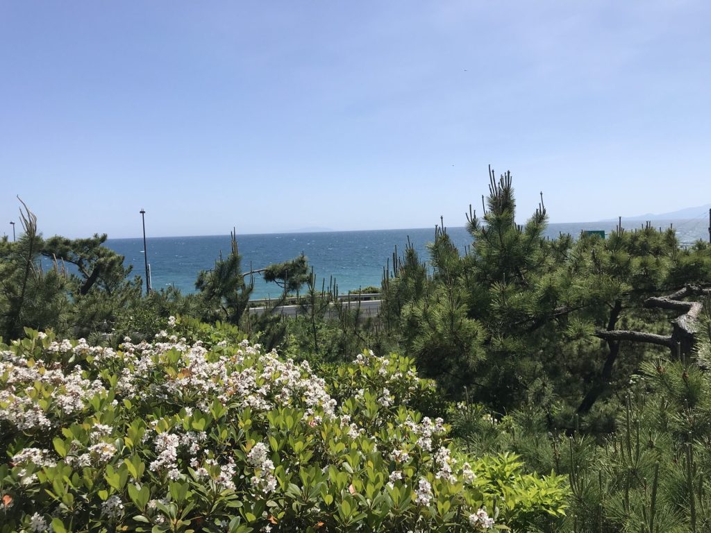 吉田茂像のたつ小高い付近からは、相模湾が一望できて眺望が素晴らしいです!