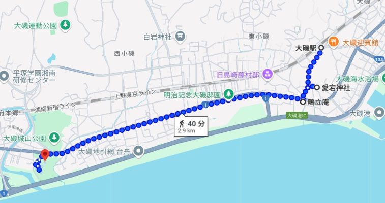 大磯駅 → 大磯愛宕神社 → 鴫立庵 → 旧東海道松並木 → 旧吉田茂邸